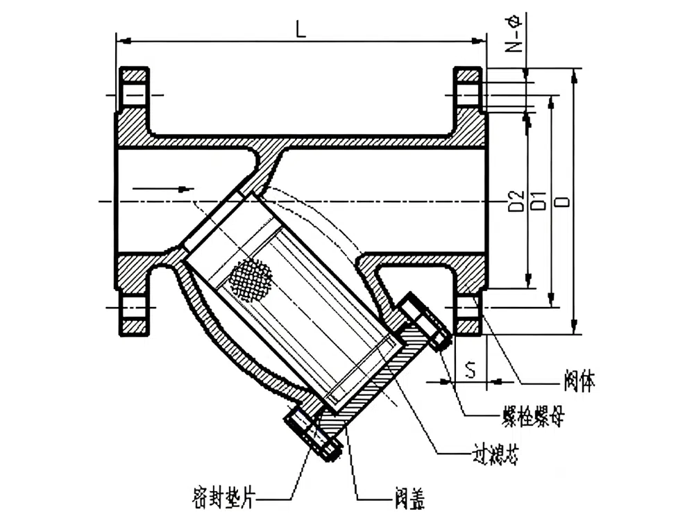 GL41H美标Y型过滤器当液体或气体通过主管进入滤网后,固体杂质颗粒被阻挡在滤网内,而洁净的流体通过滤网、由过滤器出口排出。当需要清洗时,旋开主管底部排污口螺塞,排净流体,拆卸法兰盖,取出滤网清洗后重新装入即可。