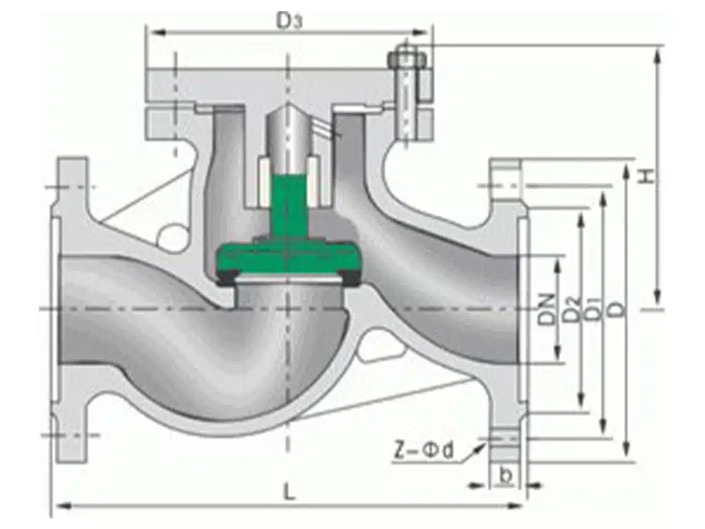 H41T-16 lift check valve, also known as check valve, check valve, the valve belongs to the automatic valve, relying on the flow of the medium itself and automatically open and close the valve, its main role is to prevent the medium backflow. Suitable for working temperature ≤ 120 ℃ water, gas, oil media pipeline.