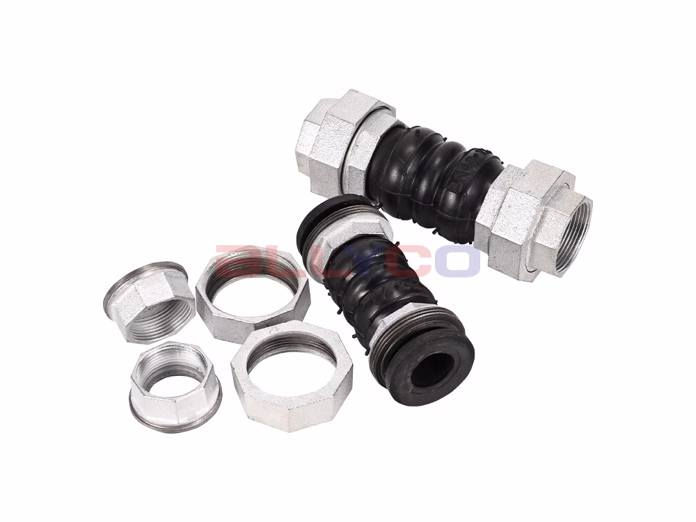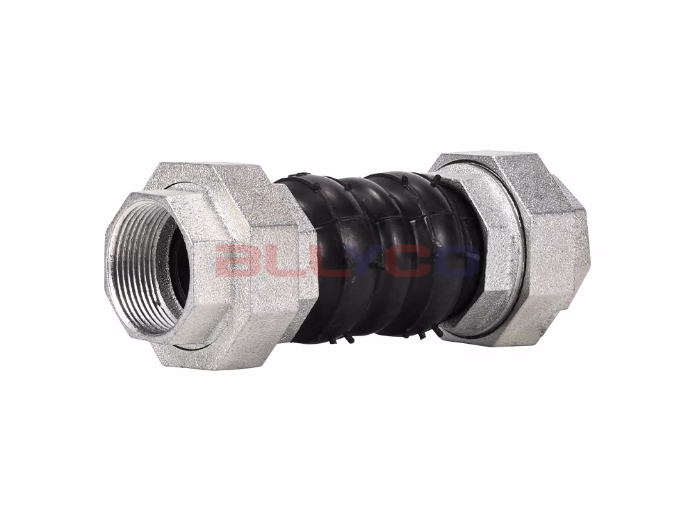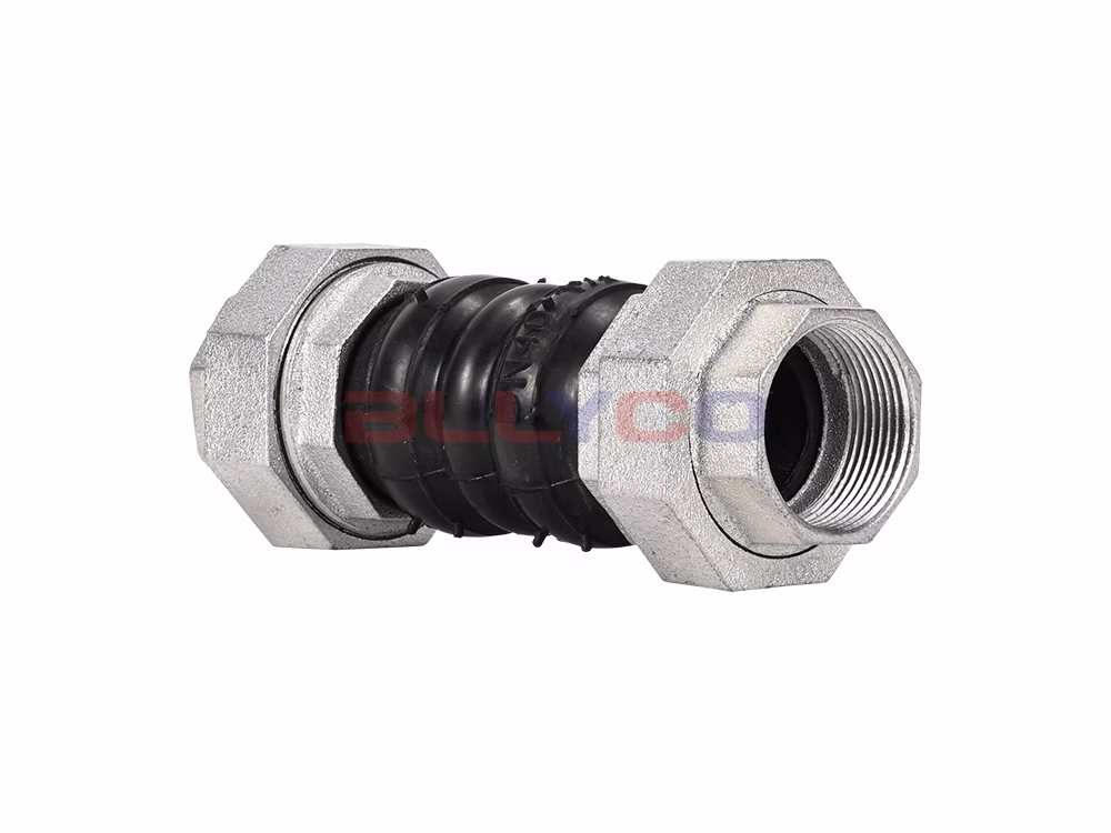 KXT-B type silk buckle rubber flexible joint, also known as female threaded flexible rubber joint, female threaded rubber shock absorber throat, etc., is a kind of high elasticity, high airtightness, media resistance and weather resistance of pipeline joints. Silk buckle rubber flexible joint makes use of the material performance characteristics of rubber, using high strength, cold and heat stability of polyester cord fabric twill and its composite, after high-pressure, high-temperature mold vulcanization and become. The internal density is high, can withstand high pressure, elastic deformation effect is good. The soft joint has the characteristics of reducing vibration, noise, good expansion and contraction, easy to use and so on. Spherical structure and good sealing performance solves the problem of pipeline rupture and damage to pipeline connecting equipment due to thermal expansion and contraction, reduces medium impact, improves the service life of pipeline and protection of equipment. Widely used in cold water, hot water, compressed air and other media.
