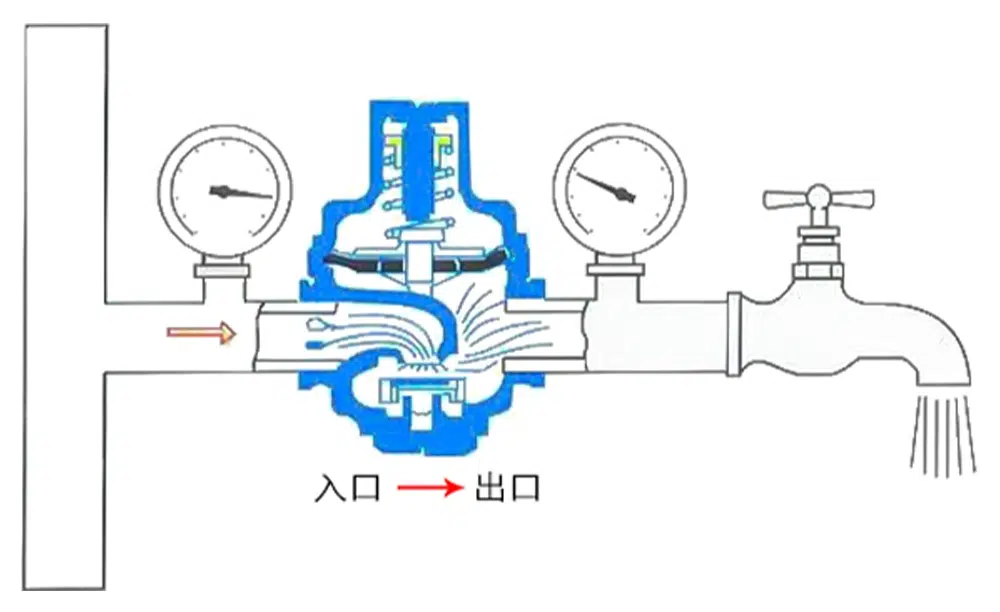 减压阀可以在360°方向任意安装,但铸刻在阀体上的箭头必须与实际水流方向一致。