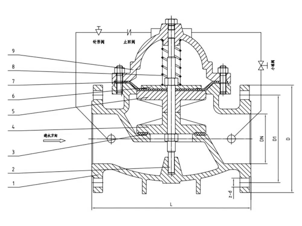 Katup penutup lambat 300X terdiri dari katup utama, katup periksa, katup jarum, katup bola, filter mikro, dan pengukur tekanan untuk membentuk sistem penerima kontrol hidraulik. Menggunakan operasi otomatis hidraulik, katup utama dapat dibuka dengan cepat atau ditutup perlahan. Mencegah timbulnya pemogokan air jam air untuk mencapai efek peredaman penutupan yang lambat. Ketika katup periksa yang menutup lambat memasukkan air dari ujung saluran masuk, air memasuki ruang kontrol katup utama melalui filter mikro, katup jarum, katup periksa, dan kemudian mengalir ke hilir melalui katup bola. Karena bukaan katup jarum lebih kecil dari bukaan katup bola, yaitu laju drainase ruang kontrol katup utama lebih besar dari laju pemasukan air, sehingga tekanan ruang kontrol berkurang, peran cakram katup utama di ujung bawah tekanan saluran masuk untuk membuka katup utama ke suplai air hilir. Ketika pipa berhenti memasok air, jika air hilir mulai mengalir kembali, sebagian air aliran balik melalui katup bola ke ruang kontrol utama, karena katup periksa, air aliran balik tidak dapat mengalir keluar dari ruang kontrol utama, menyebabkan ruang kontrol utama secara bertahap meningkatkan tekanan, perlahan-lahan menutup katup utama.