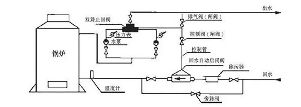 - 自动回水启闭阀阀体两端应设置闸阀。
