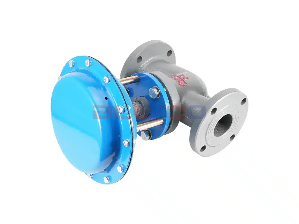 ZMBQ型气动薄膜切断阀采用顶导向结构,配用多弹簧执行机构。具有结构紧凑、重量轻、动作灵敏、流体通道呈S流线型、压降损失小、阀容量大、拆卸方便等优点。切断阀接受来自调节仪表的信号,切断、开启或改变介质流向,达到对压力、流量、液位等工艺参数自动控制。该阀适用于≤200℃的空气、水、蒸汽、油品等介质,被广泛应用于石油、化工、冶金、电力、轻工、纺织等各种工业部门的生产过程自动控制和远程控制系统中。