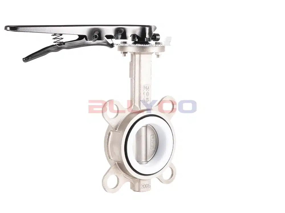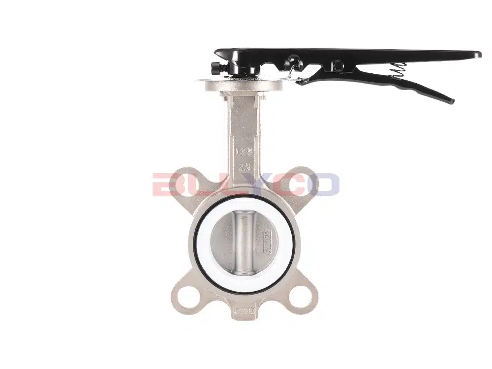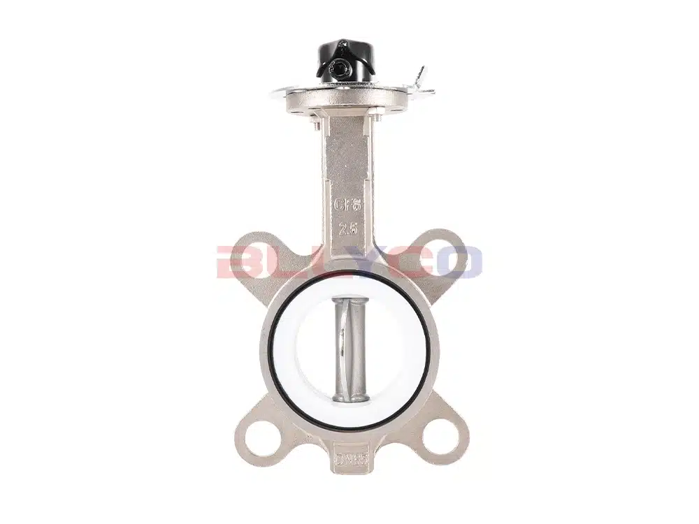 A válvula borboleta de PTFE com alça D71F-16P pode ser aplicada em tubulações de alimentos, medicamentos, produtos químicos e outros líquidos e proteção ambiental industrial, tratamento de água, prédios altos, tubulações de abastecimento de água e drenagem para abrir e fechar ou regular o fluxo de mídia. A placa borboleta da válvula borboleta de PTFE é instalada na direção do diâmetro da tubulação. No canal cilíndrico do corpo da válvula borboleta, a placa borboleta em forma de disco gira em torno do eixo, o ângulo de rotação entre 0° e 90°, quando girada a 90°, a válvula está totalmente aberta.