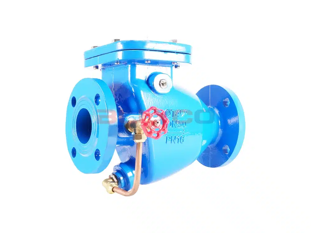 A válvula de retenção de fechamento lento de microrresistência HH44X consiste no corpo da válvula, na tampa da válvula, na aba da válvula, no eixo da válvula e na válvula reguladora, etc. Ela é instalada na saída da bomba para evitar o refluxo do meio e eliminar o golpe de aríete destrutivo, além de reduzir efetivamente a pressão do golpe de aríete do fechamento da válvula, o que pode garantir a operação segura da rede de tubulação. Ela tem as características de aba de válvula leve, grande abertura, pequena resistência a fluidos, novo projeto de mecanismo de eliminação de golpe de aríete, vedação confiável, longa vida útil, operação suave, sem vibração, sem ruído e assim por diante.