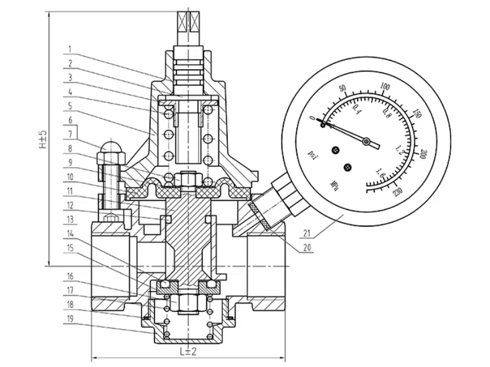- 采用直接作用隔膜式结构,内部结构非常简单,无卡阻,性能可靠,经久耐用。