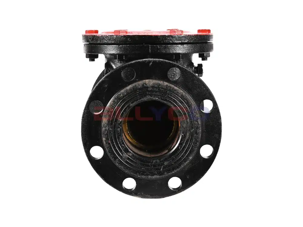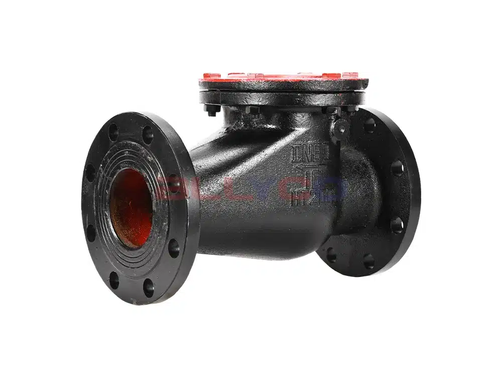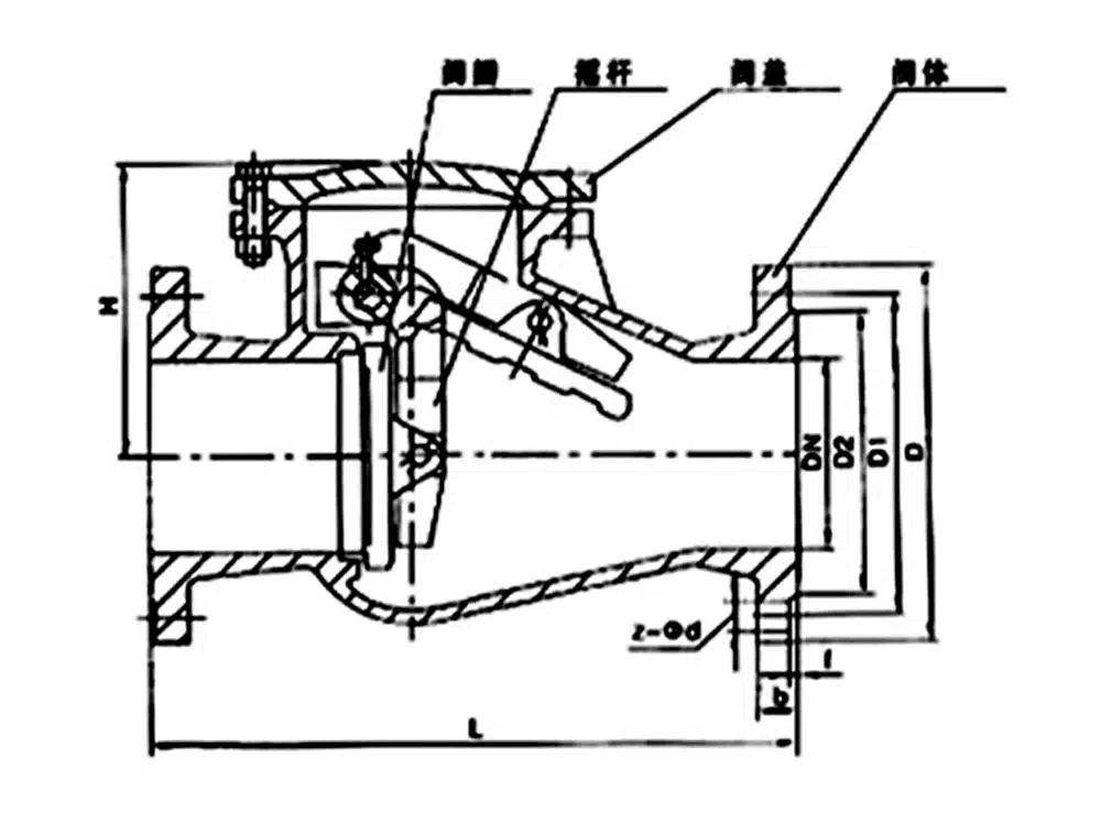 A válvula de retenção rotativa adota uma estrutura rotativa de balancim interno, todas as partes de abertura e fechamento da válvula são instaladas dentro do corpo da válvula, não penetram no corpo da válvula, além das partes do flange central com juntas de vedação e anéis de vedação, não há pontos de vazamento externos, eliminando a possibilidade de vazamento da válvula. O balancim da válvula de retenção oscilante e a conexão da aba da válvula com a estrutura de conexão esférica, de modo que a aba da válvula na faixa de 360 graus tenha um certo grau de liberdade, há uma quantidade apropriada de compensação para a posição, adequada para meios limpos, não deve ser usada para partículas sólidas e viscosidade do meio.