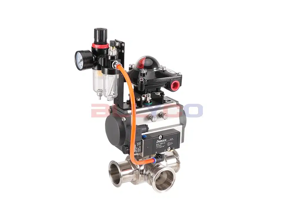 Пневматический быстросъемный трехходовой шаровой кран Q685F-10P состоит из пневматического привода углового хода и санитарного шарового крана в сборе. Корпус пневматического быстросъемного трехходового шарового крана изготовлен из нержавеющей стали, внутренняя стенка проточной части 0,5um (240Grit) электронной полировки, чтобы сохранить жидкость беспрепятственно. Уплотнительная поверхность принята полным пакетом PTFE без мертвого пространства, без мертвого пространства и легко очищается, чтобы обеспечить гигиену. Пневматические быстросъемные 3-ходовые шаровые краны широко используются в пивоваренной, пищевой, химической, фармацевтической, биологической, водоочистной и других областях.
