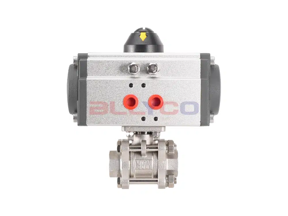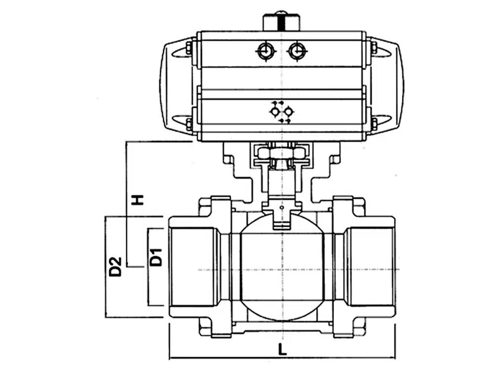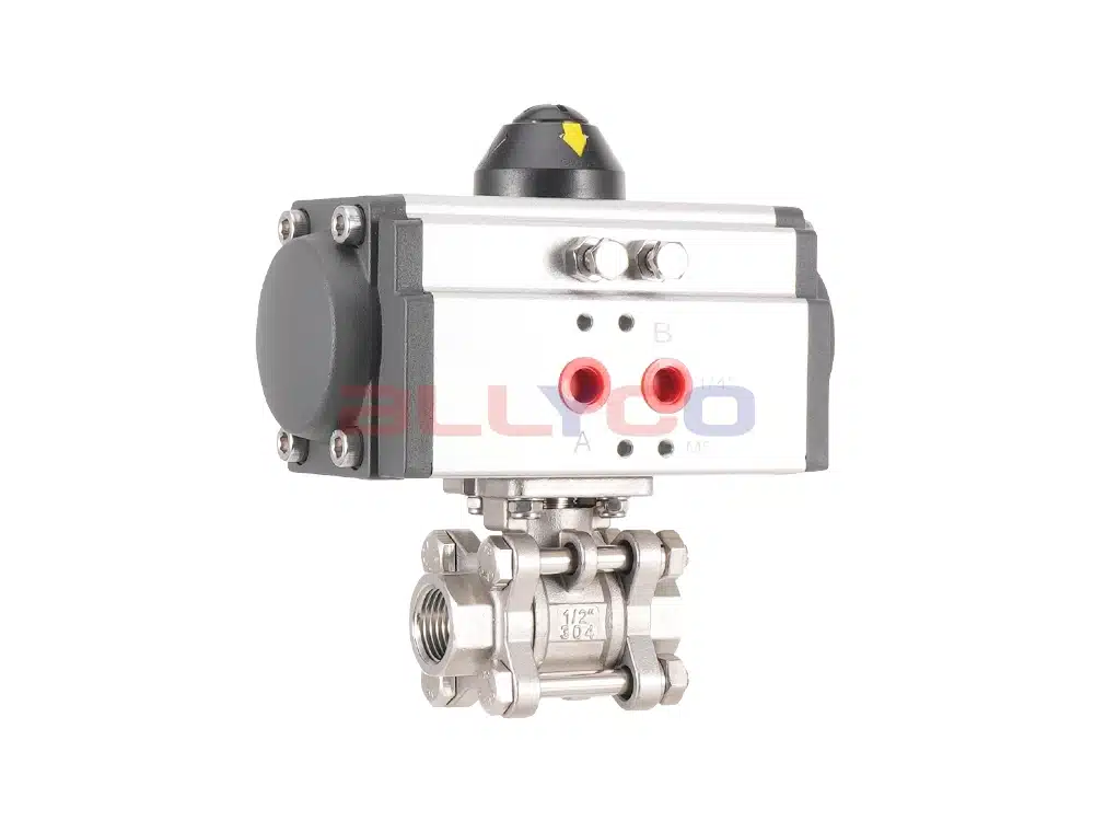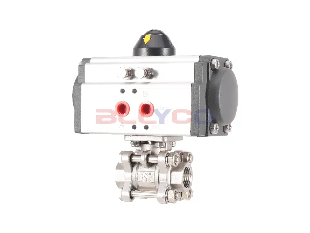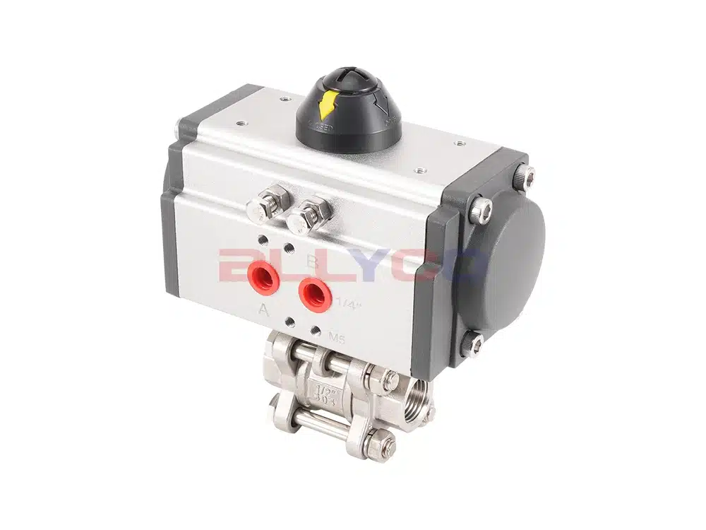 Пневматические трехсекционные шаровые краны приводят во вращение корпус шара за счет поворота на 90° пневматического привода для достижения циркуляции и блокировки среды. Прямое соединение между приводом и корпусом клапана снижает вероятность отказа и подходит для легкого промышленного оборудования с небольшим объемом и узким пространством. Шток клапана имеет конструкцию с перевернутыми уплотнениями. При аномальном давлении в полости клапана шток клапана не подвергается ударам. Механизм позиционирования 90°-переключателя может быть настроен, и при необходимости могут быть добавлены блокировки для предотвращения неправильной работы.