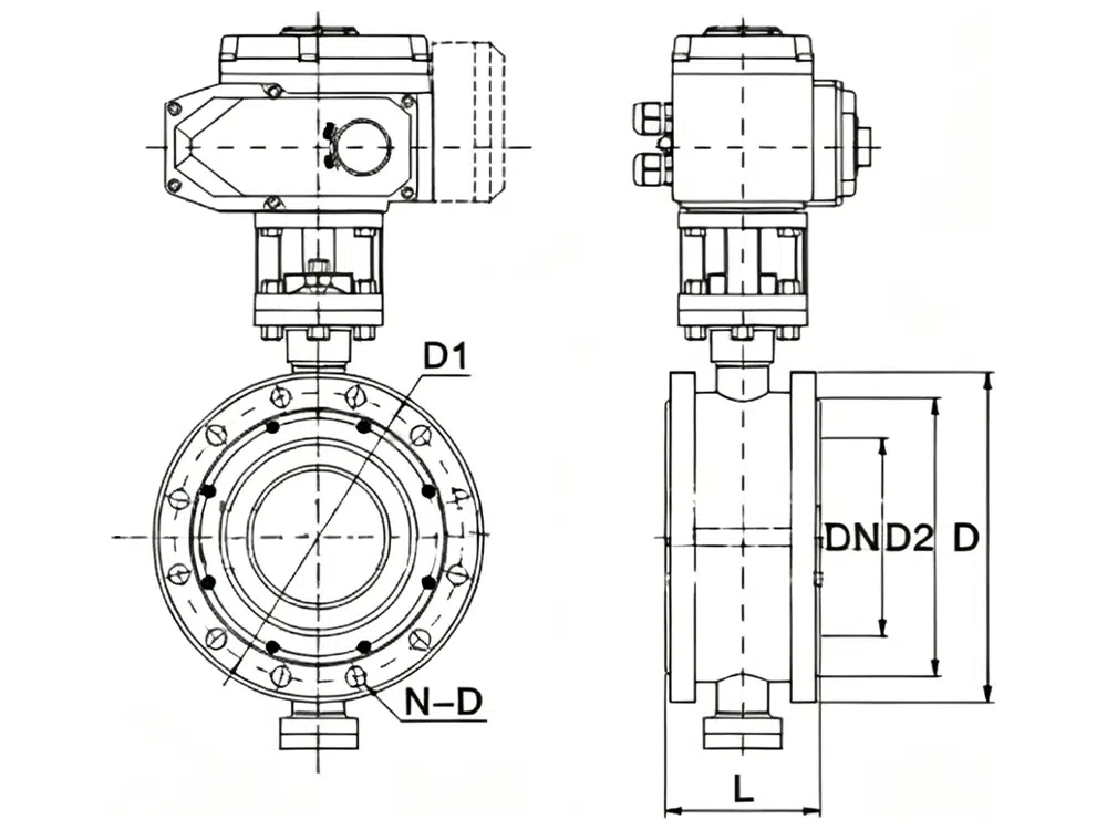 - 蝶阀采用三偏心密封结构,阀座与蝶板几乎无磨损,具有越关越紧的密封功能。