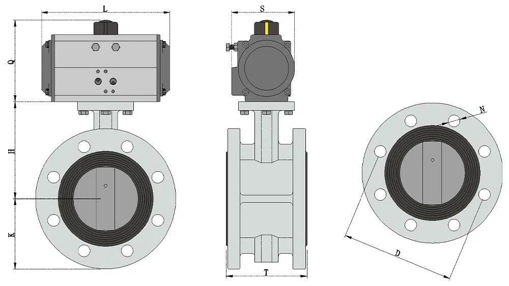 D641X-16P气动法兰蝶阀性能可靠、配套简单、流通能力大,特别适合于介质是粘稠、含颗粒、纤维性质的场合。适用于温度≤80℃,如轻纺、造纸、食品、医药、化工、石油、电力、给排水、气体等管道上作调节流量和截流介质的作用。