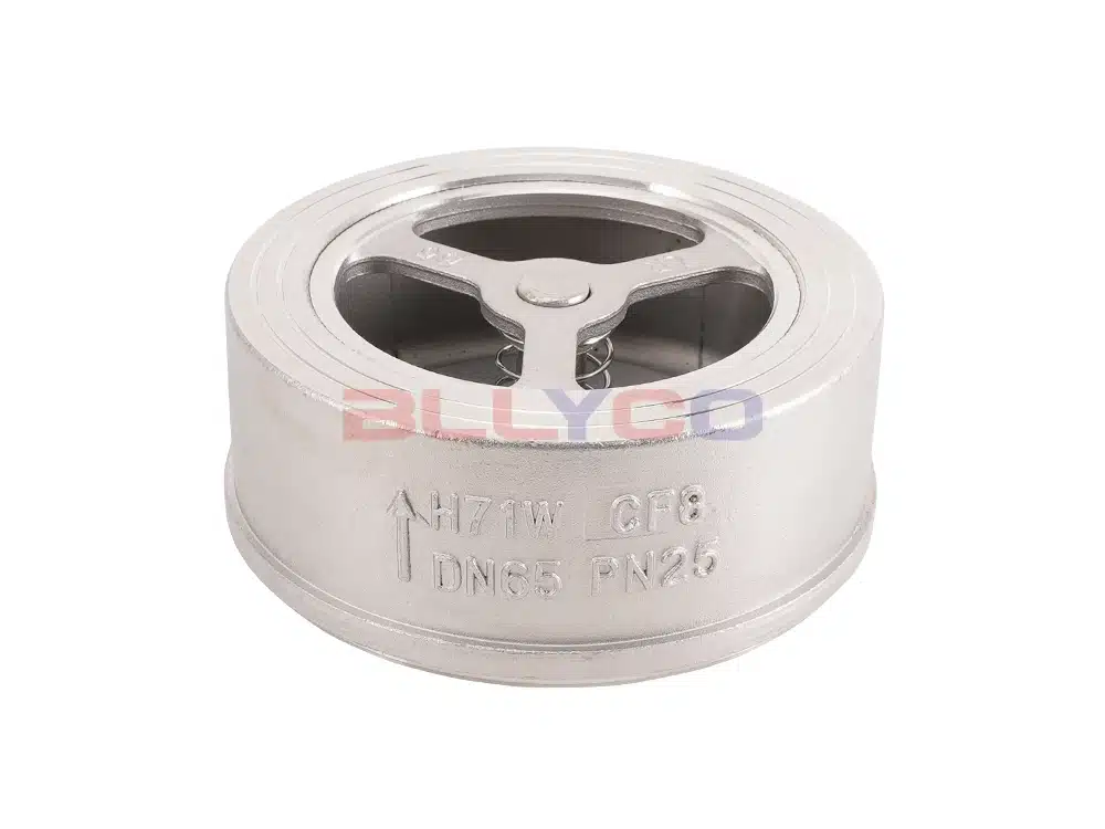 วาล์วกันกลับแบบยกชนิดแผ่นเวเฟอร์ H71W-16P ผลิตจากสแตนเลสสตีล 304 สามารถติดตั้งในท่อได้ในทุกตำแหน่งเพื่อป้องกันการไหลย้อนของสื่อ ในระบบน้ำป้อนหม้อไอน้ำ สามารถใช้งานได้โดยการติดตั้งระหว่างหน้าแปลนท่อที่มีอยู่ทั้งสองด้าน ใช้กันอย่างแพร่หลายในระบบ급น้ำและระบายน้ำ, ระบบป้องกันเพลิง, การก่อสร้าง, ระบบปรับอากาศ (HVAC), และระบบอุตสาหกรรมตัวอย่างเช่น: การติดตั้งที่ทางออกของปั๊มช่วยป้องกันการเกิดแรงกระแทกของน้ำ (water hammer) เสียงกระแทกของน้ำ และแรงกระแทกที่ทำลายอุปกรณ์ พร้อมทั้งป้องกันการไหลย้อนและปกป้องอุปกรณ์ ขณะเดียวกันยังช่วยประหยัดพลังงานได้อย่างมีนัยสำคัญ