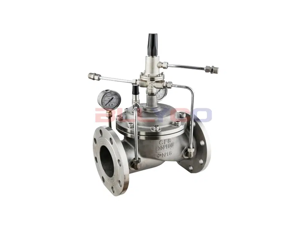 วาล์วบายพาสความดันต่าง 800X ประกอบด้วยวาล์วหลัก, วาล์วควบคุมความดันต่าง, วาล์วเข็ม, วาล์วลูกบอล, ไมโครฟิลเตอร์ และเกจวัดความดันภายในระบบท่อที่ควบคุมด้วยระบบไฮดรอลิก ผ่านห้องควบคุมวาล์วควบคุมที่ออกแบบไว้ วาล์วนี้จะเปรียบเทียบสัญญาณการเปลี่ยนแปลงของความดันและส่งสัญญาณการเปิดวาล์วหลักเพื่อควบคุมการเปิดของวาล์วหลัก ซึ่งทำให้ความดันต่างระหว่างทางเข้าและออกคงที่ตามค่าที่ตั้งไว้ ด้วยระบบควบคุมไฮดรอลิกแบบทำงานเอง ผลิตภัณฑ์นี้ไม่ต้องการอุปกรณ์เพิ่มเติมหรือแหล่งพลังงาน ทำให้การบำรุงรักษาเป็นเรื่องง่ายชุดวาล์วนี้เหมาะสำหรับระบบเครือข่ายการจ่ายน้ำในอาคารสูง, พื้นที่อยู่อาศัย, และโครงการจ่ายน้ำประปาของเทศบาล.