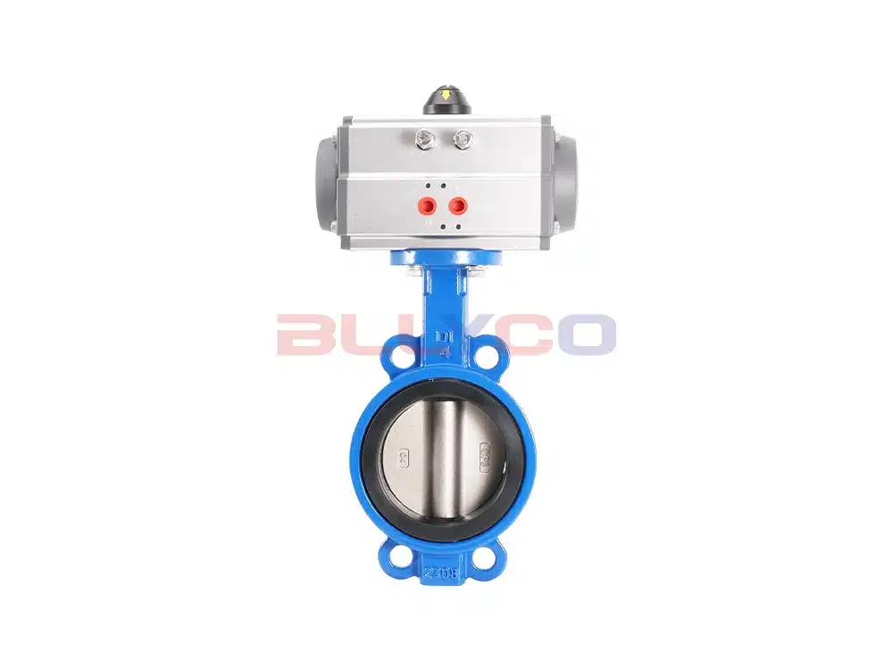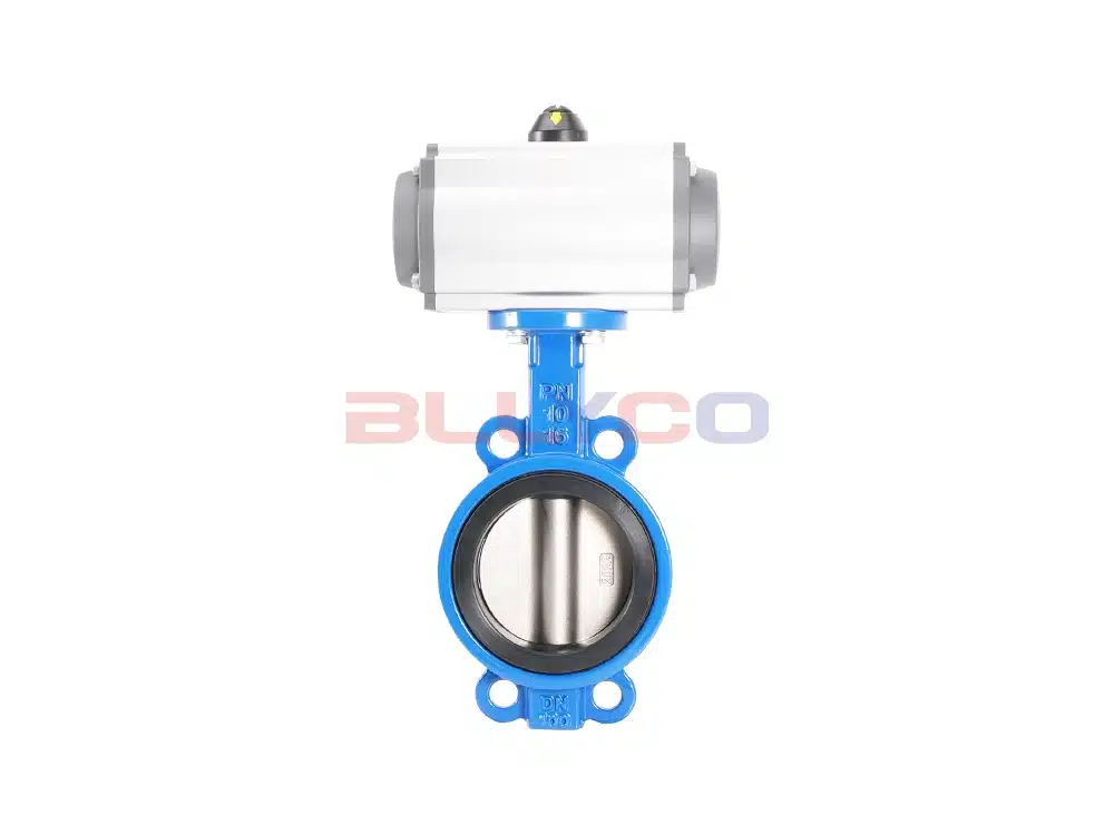 วาล์วผีเสื้อแบบแผ่นบางระบบลมเป็นวาล์วผีเสื้อมาตรฐานที่ได้รับความนิยมสำหรับท่อส่ง เนื่องจากมีโครงสร้างที่เรียบง่าย ค่าสัมประสิทธิ์ความต้านทานการไหลต่ำ คุณสมบัติการไหลที่เกือบเป็นเส้นตรง และไม่กักเก็บเศษสิ่งสกปรก นอกจากนี้ยังมีน้ำหนักเบา ติดตั้งง่าย และต้องการแรงบิดในการขับเคลื่อนน้อยวาล์วผีเสื้อแบบนิวเมติกทำหน้าที่เป็นทั้งอุปกรณ์ปิด-เปิดสำหรับสื่อต่างๆ และเป็นตัวควบคุมการไหล วาล์วเหล่านี้มีการใช้งานอย่างแพร่หลายในระบบระบายน้ำ ระบบบำบัดน้ำเสีย การแปรรูปอาหาร ระบบทำความร้อน ระบบจ่ายก๊าซ อุตสาหกรรมทางทะเล ระบบไฟฟ้าพลังน้ำ อุตสาหกรรมโลหะ ระบบพลังงาน และอุตสาหกรรมสิ่งทอเบา