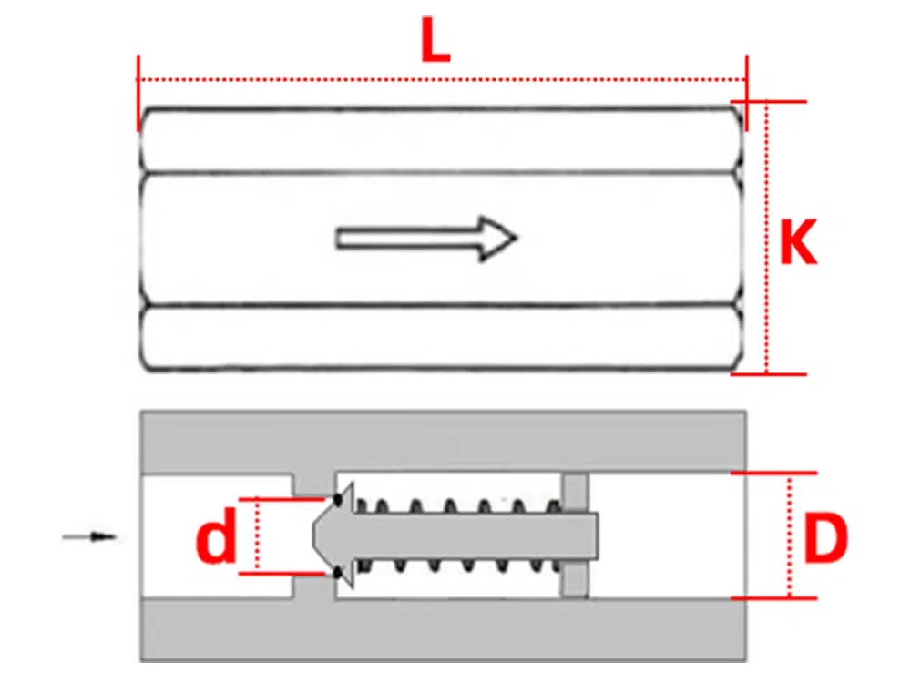 H12W-64P内螺纹直通单向阀的功能是用来防止管路中的介质倒流。单向阀属于自动阀类,启闭件靠流动介质的力量自行开启或关闭。单向阀只用于介质单向流动的管路上,阻止介质回流。