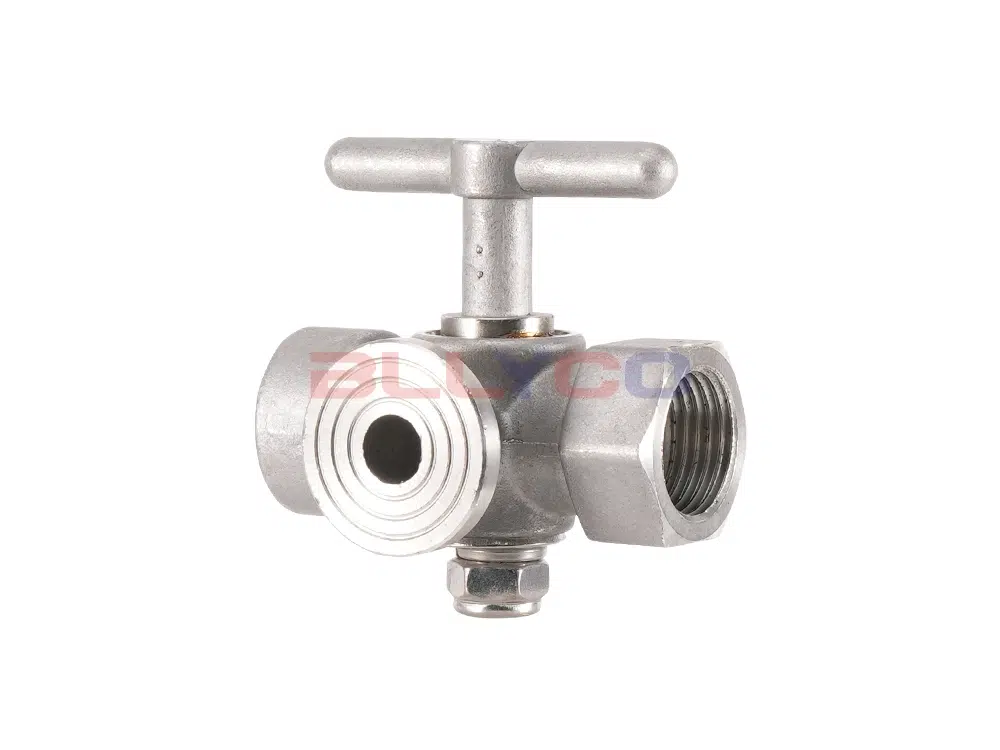 304不锈钢三通旋塞阀是柱塞形的旋转阀主要用于连接压力表,底部采用可简易调整的螺帽锁紧结构,一头4分连接管道,另一头M20*1.5连接压力表。压力表与存水弯管之间,装有三通旋塞,它是用来冲洗存水弯管,水压试验用表与工作压力表的切换,装接标准压力表与工作压力表的校验,同时也是装卸压力表不可少的重要附件。旋塞密封面之间运动带有擦拭作用,而在全开时可以防止与流动介质的接触,故它通常也能用于带悬浮颗粒的介质。通过旋转90度使阀塞上的通道口与阀体上的通道口相同或分开,系实现开启或关闭的一种阀门。旋塞阀具有结构简单、开关迅速、流体阻力小等特点。