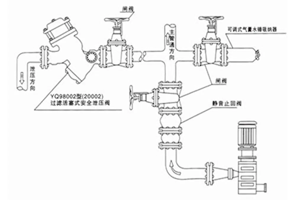 YQ98002 filtre pistonlu tip emniyet tahliye vanası, yüksek binalara, yangın söndürme su besleme sistemine ve diğer su besleme sistemi boru hattına monte edilir, su besleme boru hattındaki basınç tahliye vanasının ayar basıncını aştığında, tahliye vanası otomatik olarak açılır boru hattının güvenliğini korumak için basıncı hızla tahliye etmek, aynı zamanda ana vananın yukarı akışındaki su besleme basıncını korumak için bir basınç tahliye vanası olarak. YQ98002 filtre pistonlu tip emniyet tahliye vanası, sabit bir güvenli ayar basıncını doğru bir şekilde koruyabilir, aşırı basınç bir kez basıncı derhal tahliye etmek için tahliye vanasını hızla açar. YQ98002 filtre pistonlu tip emniyet tahliye vanası, sabit emniyet basıncını doğru bir şekilde koruyabilir, aşırı basınç olduğunda, tahliye vanası hızlı bir şekilde açılır ve basıncı zamanında tahliye eder, YQ98002 filtre pistonlu tip emniyet tahliye vanası sorunsuz ve güvenilir bir şekilde kapanabilir, basınç artçı şokunu ortadan kaldırır.