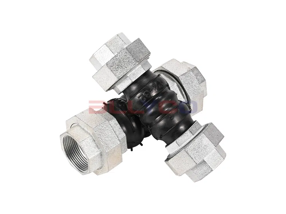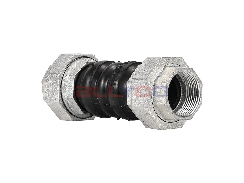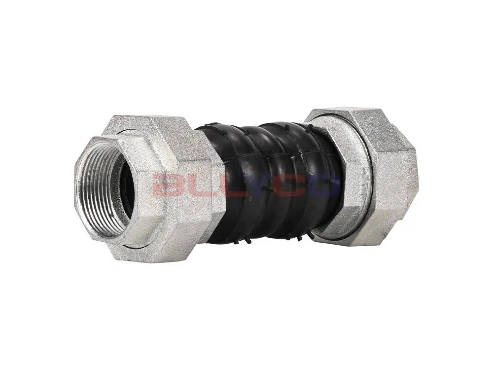 KXT-B型丝扣橡胶软接头又称内螺纹可曲挠橡胶接头,内螺纹橡胶避震喉等,是一种高弹性、高气密性、耐介质性和耐气候性的管道接头。丝扣橡胶软接头利用了橡胶的材料性能特点,采用高强度、冷热稳定性强的聚酯帘子布斜交与之复合后,经过高压、高温模具硫化而成。内部致密性高、能承受较高压力、弹性变形效果好。该软接头具有减少震动、减低噪音、伸缩性好、使用方便等特点。球形结构和良好的密封性能解决了因热胀冷缩造成管道破裂和损坏管道连接设备,减少介质冲击,提高管道的使用周期和对设备的保护。广泛适用于冷水、热水、压缩空气等介质。