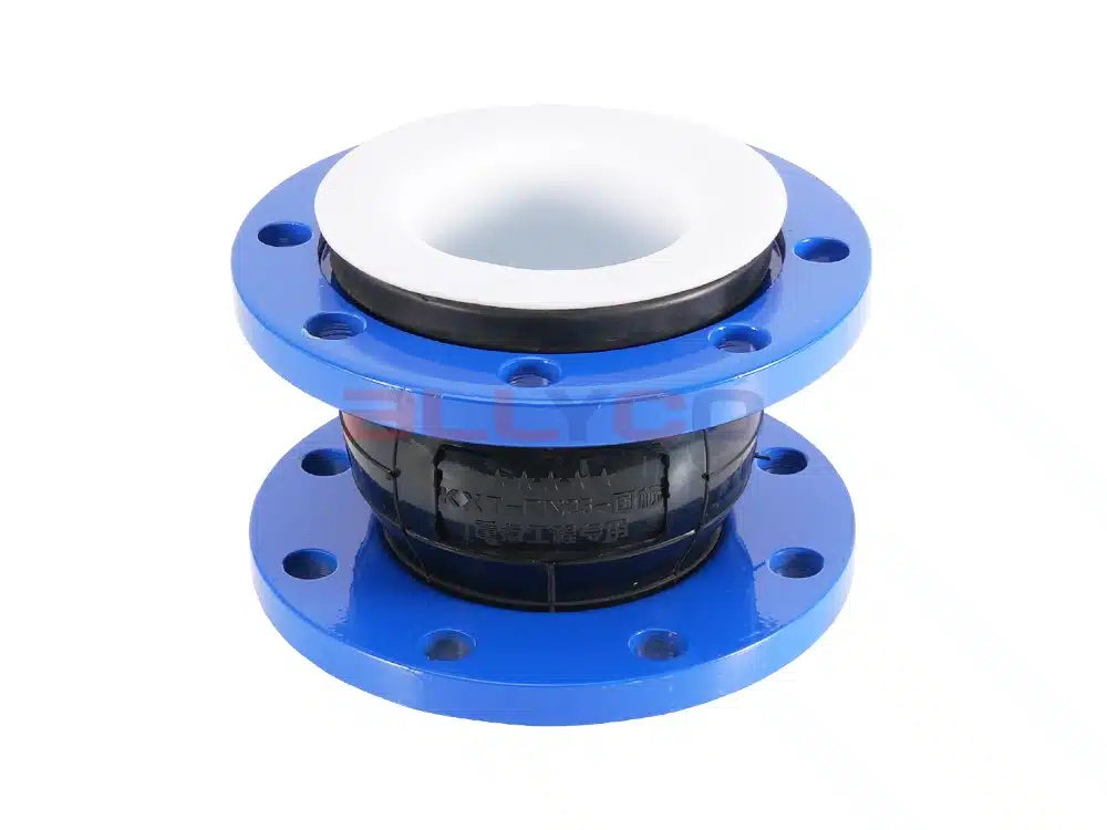 Ống nối mềm cao su fluorinated là một phụ kiện quan trọng được sử dụng trong kết nối ống dẫn. Cao su PTFE là một vật liệu có khả năng chống axit, kiềm, nhiệt độ cao, ăn mòn và mài mòn tốt, có thể được sử dụng rộng rãi trong các ngành công nghiệp hóa chất, dầu mỏ, thực phẩm, dược phẩm, v.v. Khớp nối mềm này được làm bằng cao su PTFE lót bên trong, có thể cách ly hiệu quả môi trường bên trong đường ống với khớp nối kim loại, tránh sự ăn mòn kim loại bởi môi trường, nâng cao tuổi thọ của đường ống.